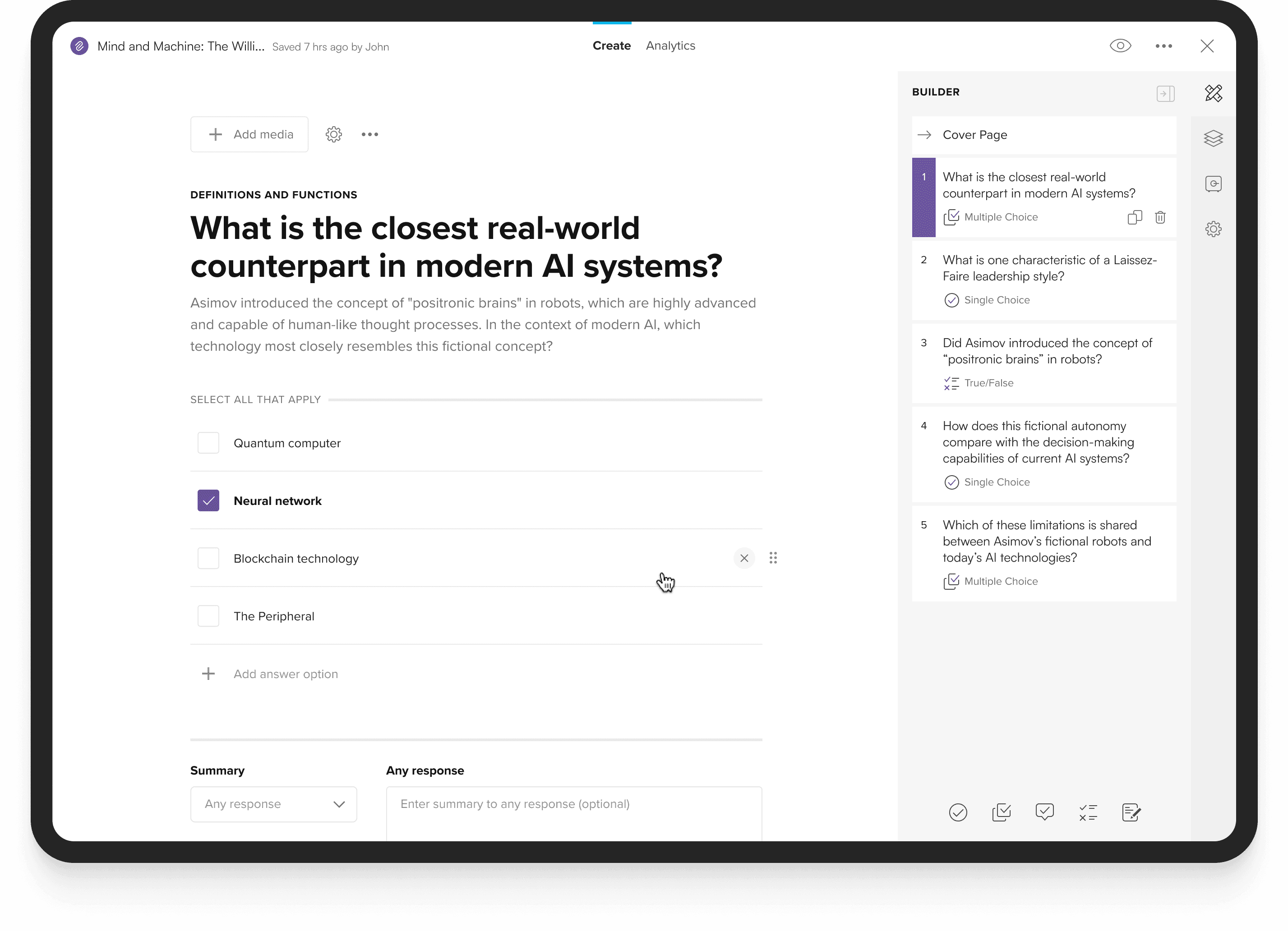 Learning deepens through reflection and engagement. That’s why we built quiz feature aimed at Content Designers, enabling them to create impactful quizzes that truly enhance learning. Our goal was to simplify the creation process, making it appealing and effective for educators to focus on content and to engage learners.